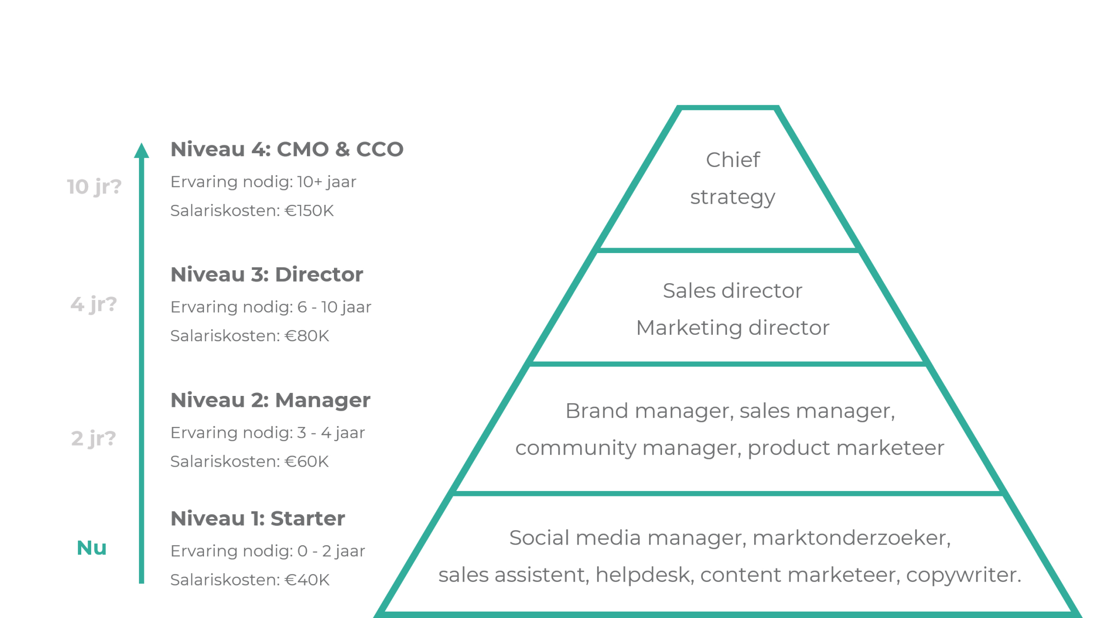 • Salariskosten: Starters kosten gemiddeld €40K - en die moet je ook nog wegwijs maken.